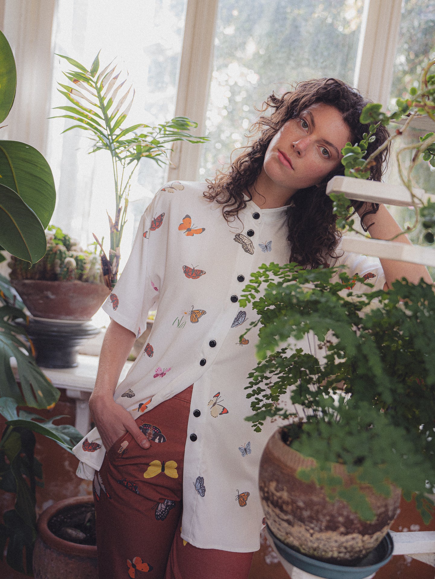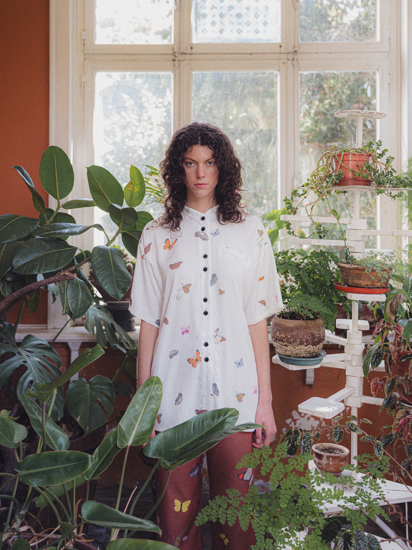 CAMISA GLOBO CUELLO MAO MARIPOSAS CRUDO