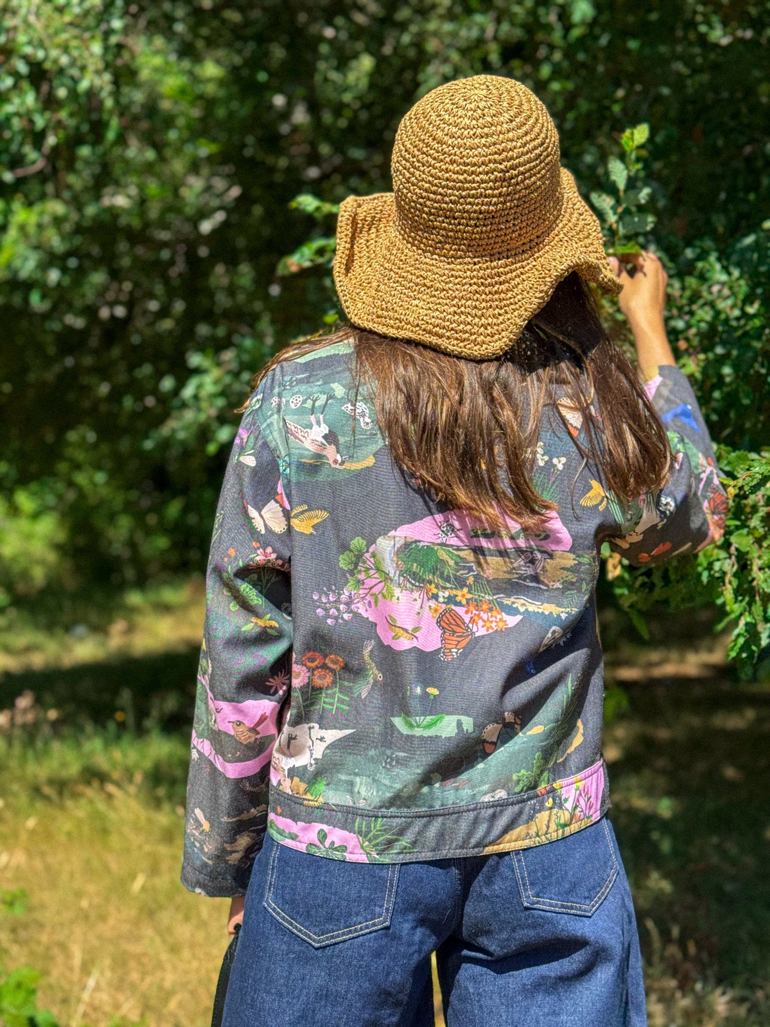 Chaqueta de verano en gabardina liviana y suave. Calce holgado, largo a cadera y con puño incluido.