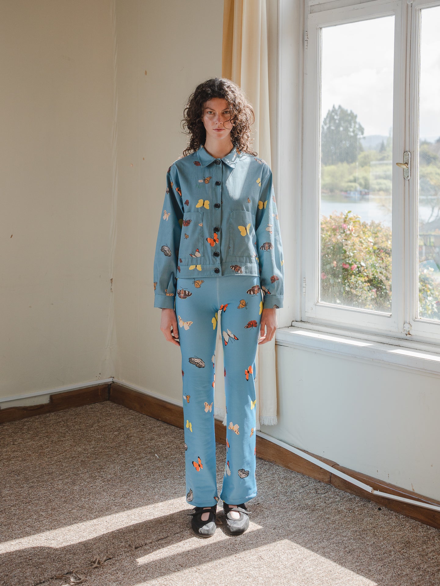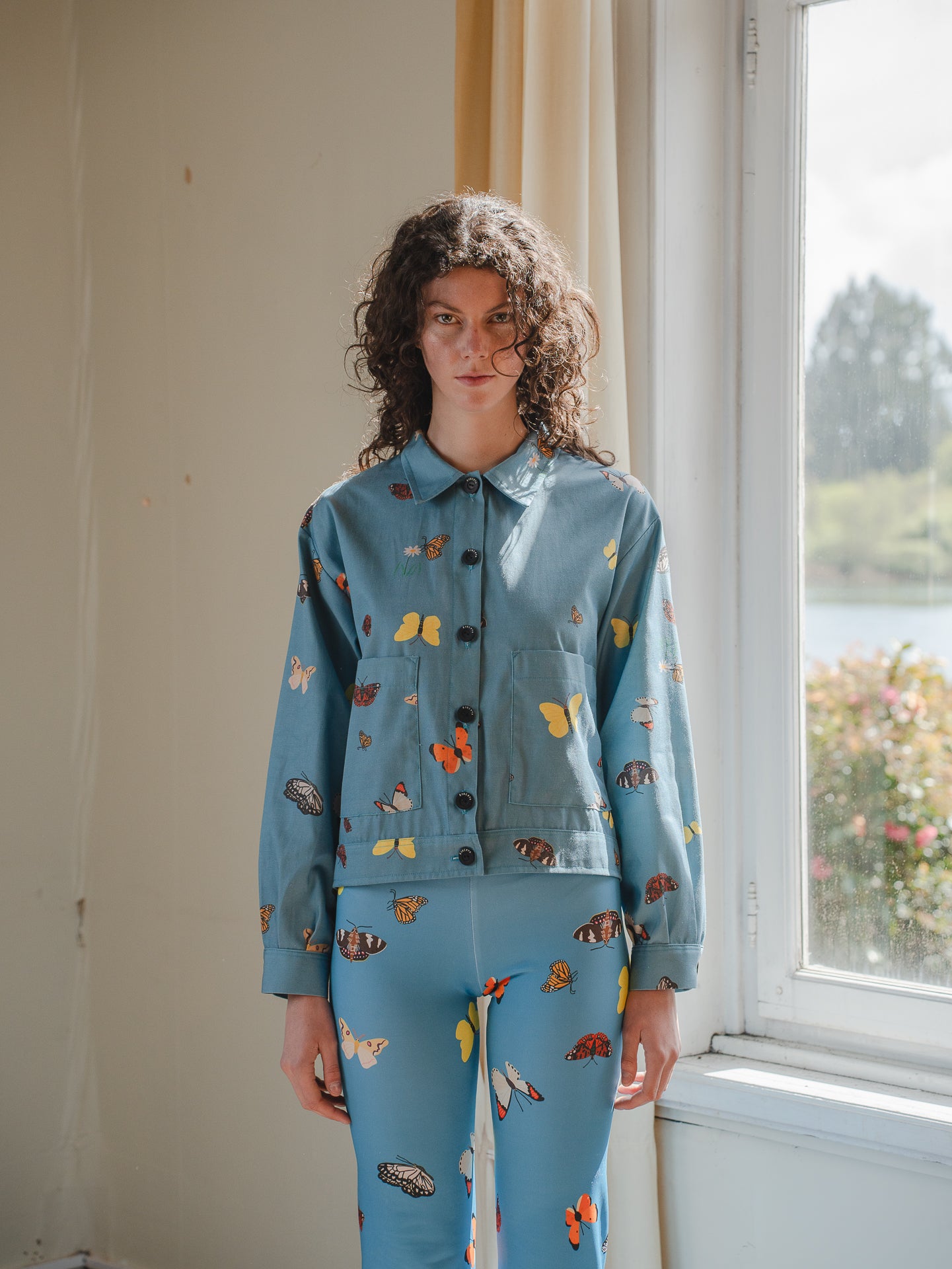 Chaqueta de verano en gabardina liviana y suave. Calce holgado, largo a cadera y con puño incluido.