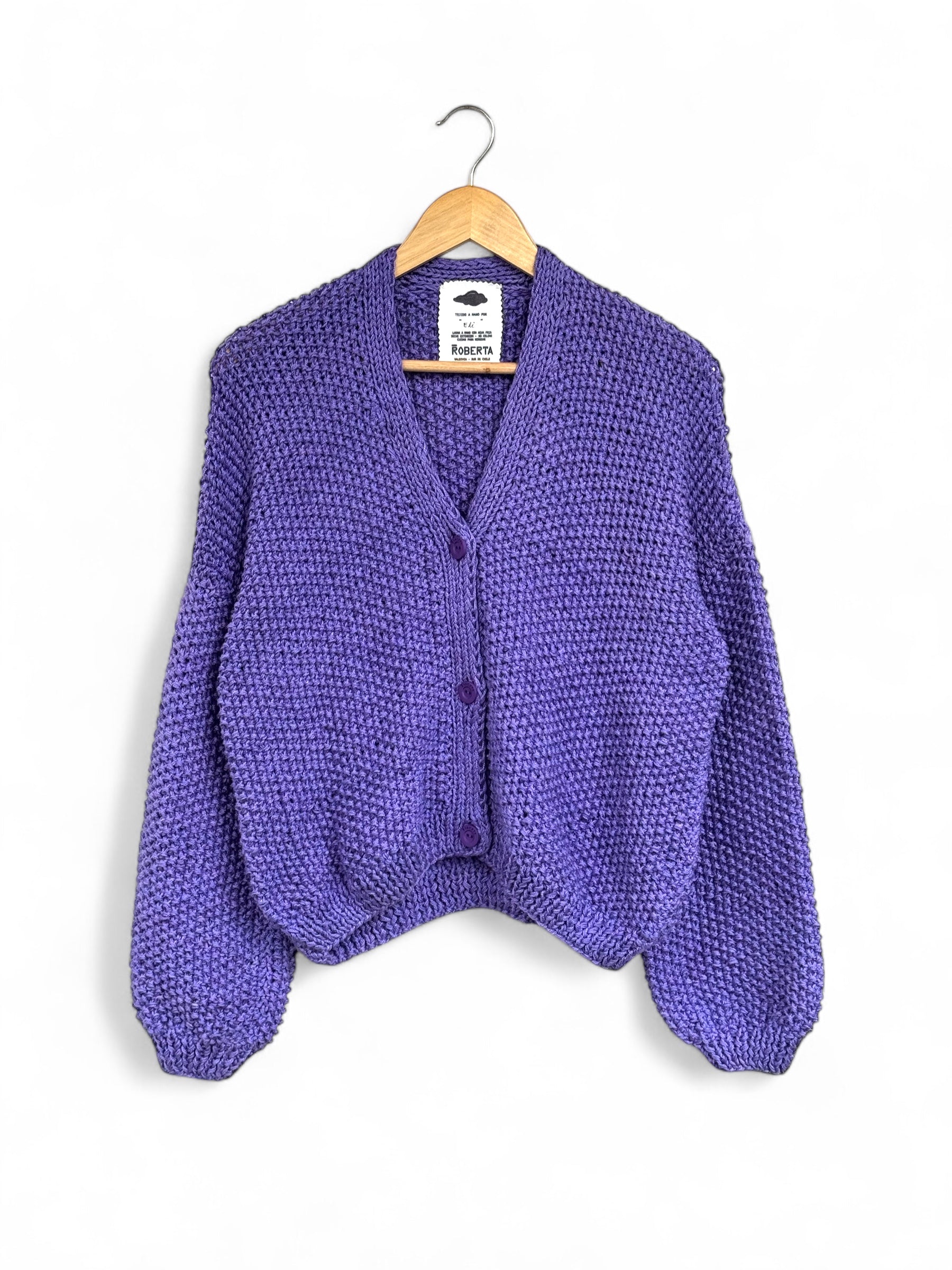 Chaleco tejido a mano en Valdivia, sur de Chile. Cuello en V, 3 botones, calce holgado y relajado, largo hasta cadera alta.
