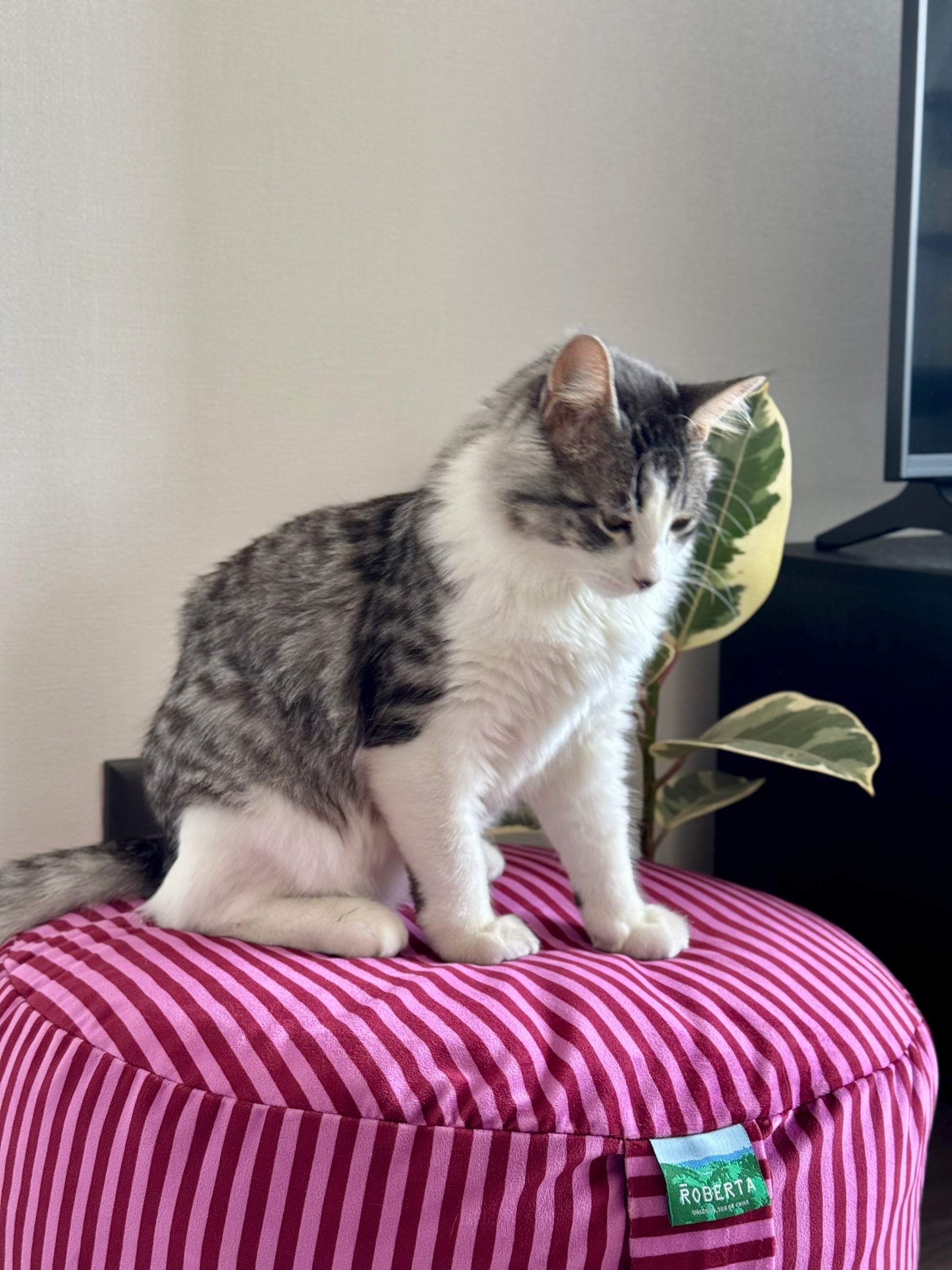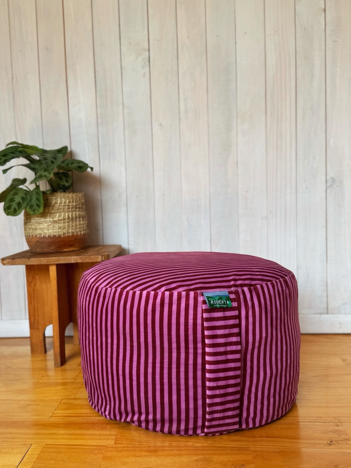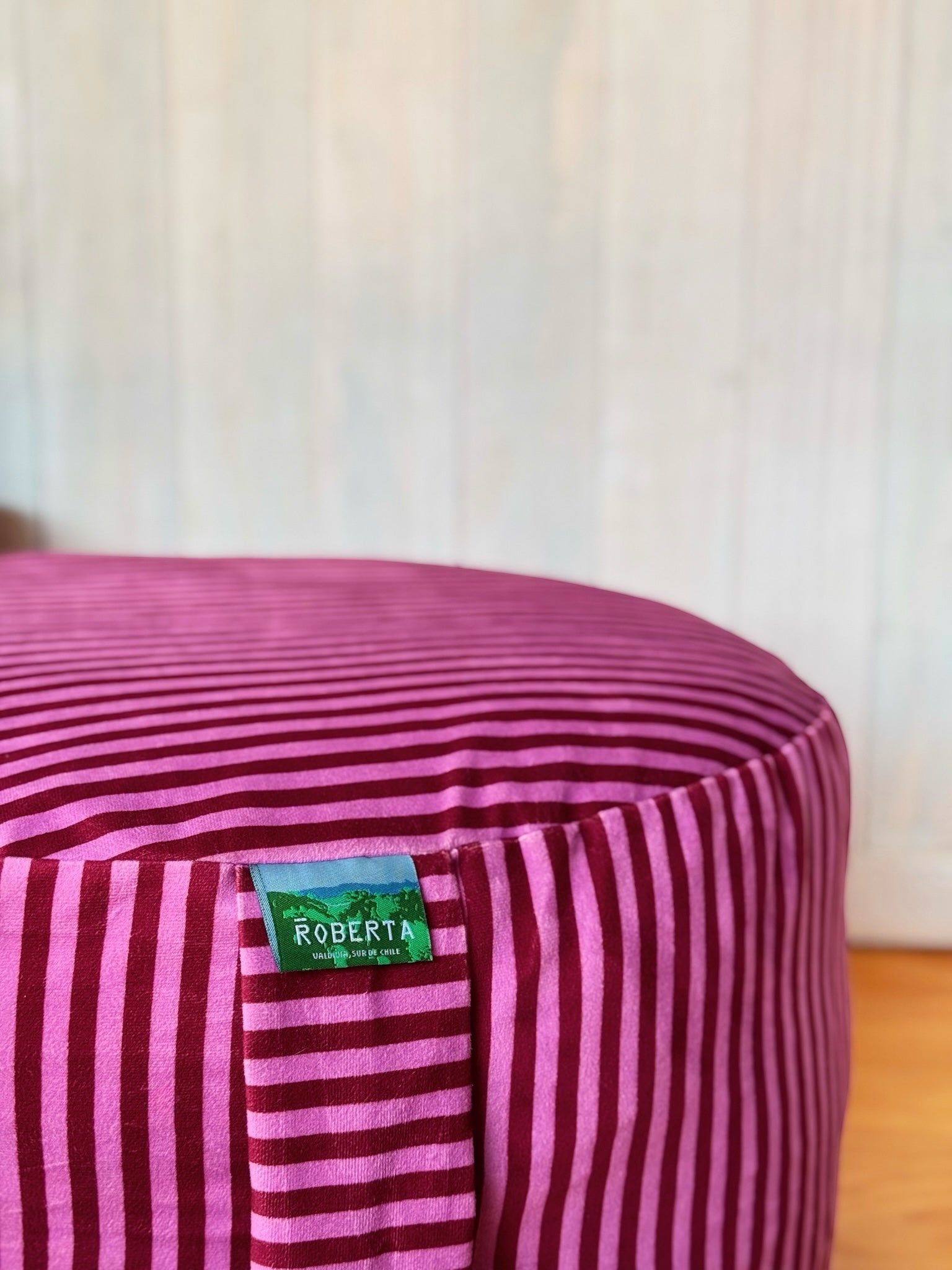 Estampado propio ROBERTA, diseñado para llenar tu casa de alegría y personalidad. Cuenta con dos asas para moverlo fácilmente, cierre y forro interior independiente para retirar el relleno y lavar la funda sin complicaciones.