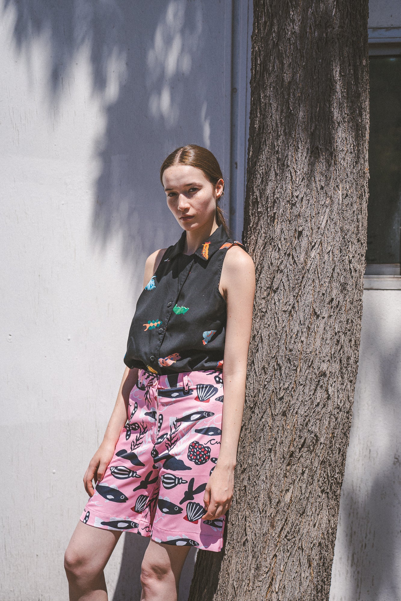 Short tiro a la cintura con botón, cierre. Bolsillo de ojal falso en espalda.