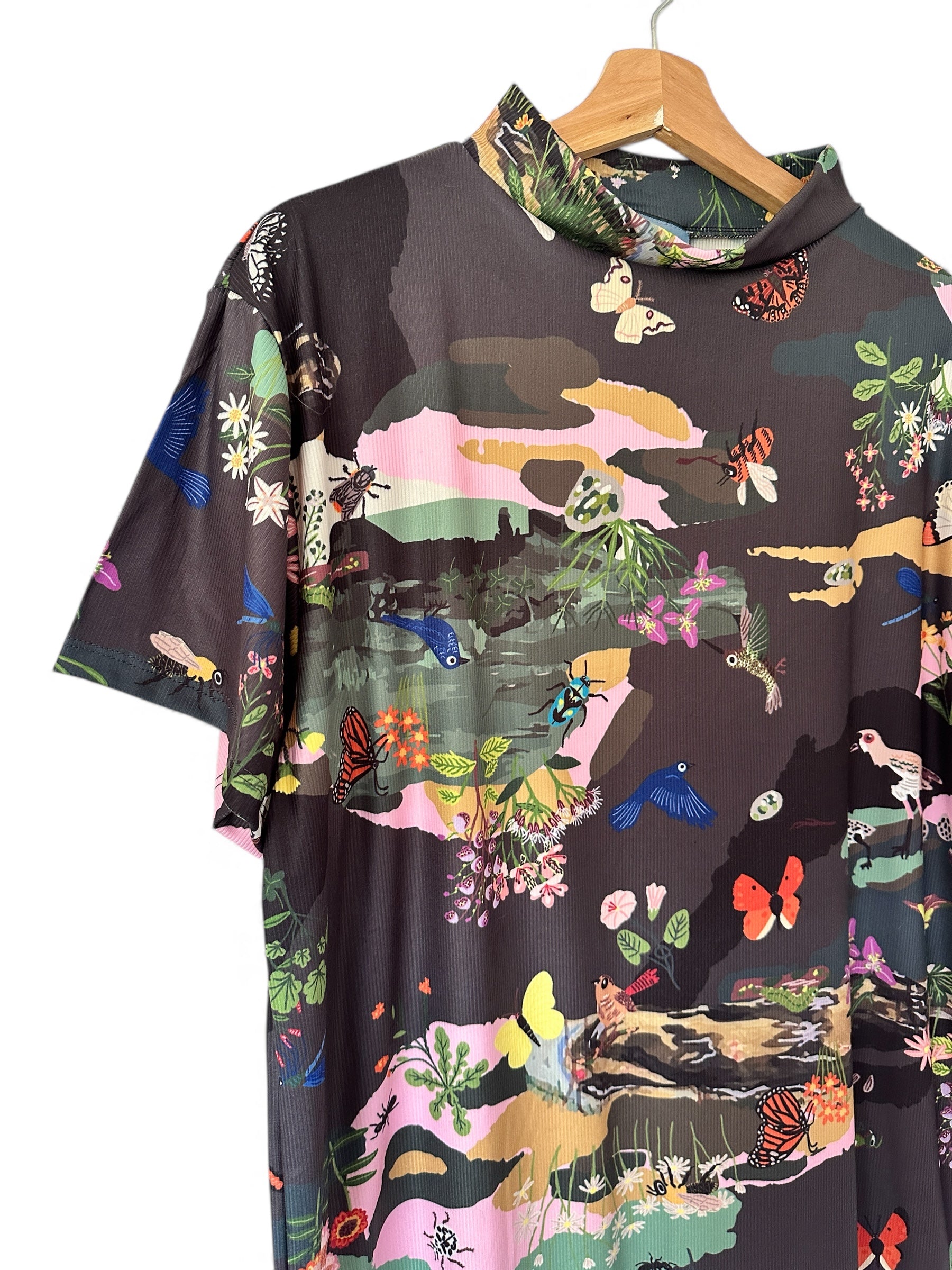 Vestido cuello tortuga relajado, manga caída y calce holgado.